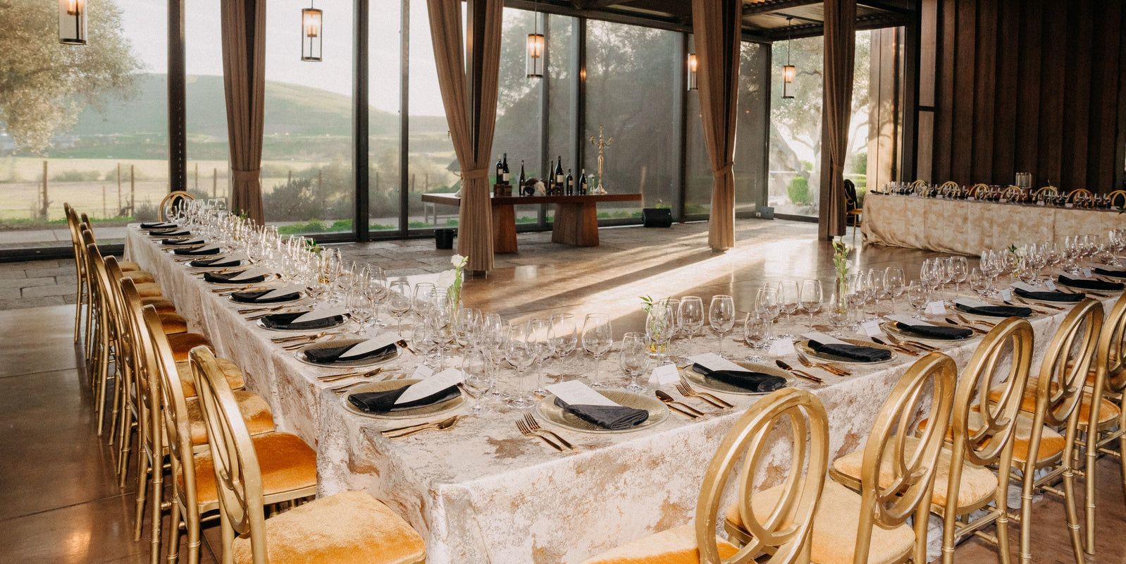 wine-inspired dinner in the Gallery with floor to ceiling windows overlooking the vineyards or an intimate reception or team celebration in our cozy Library.
